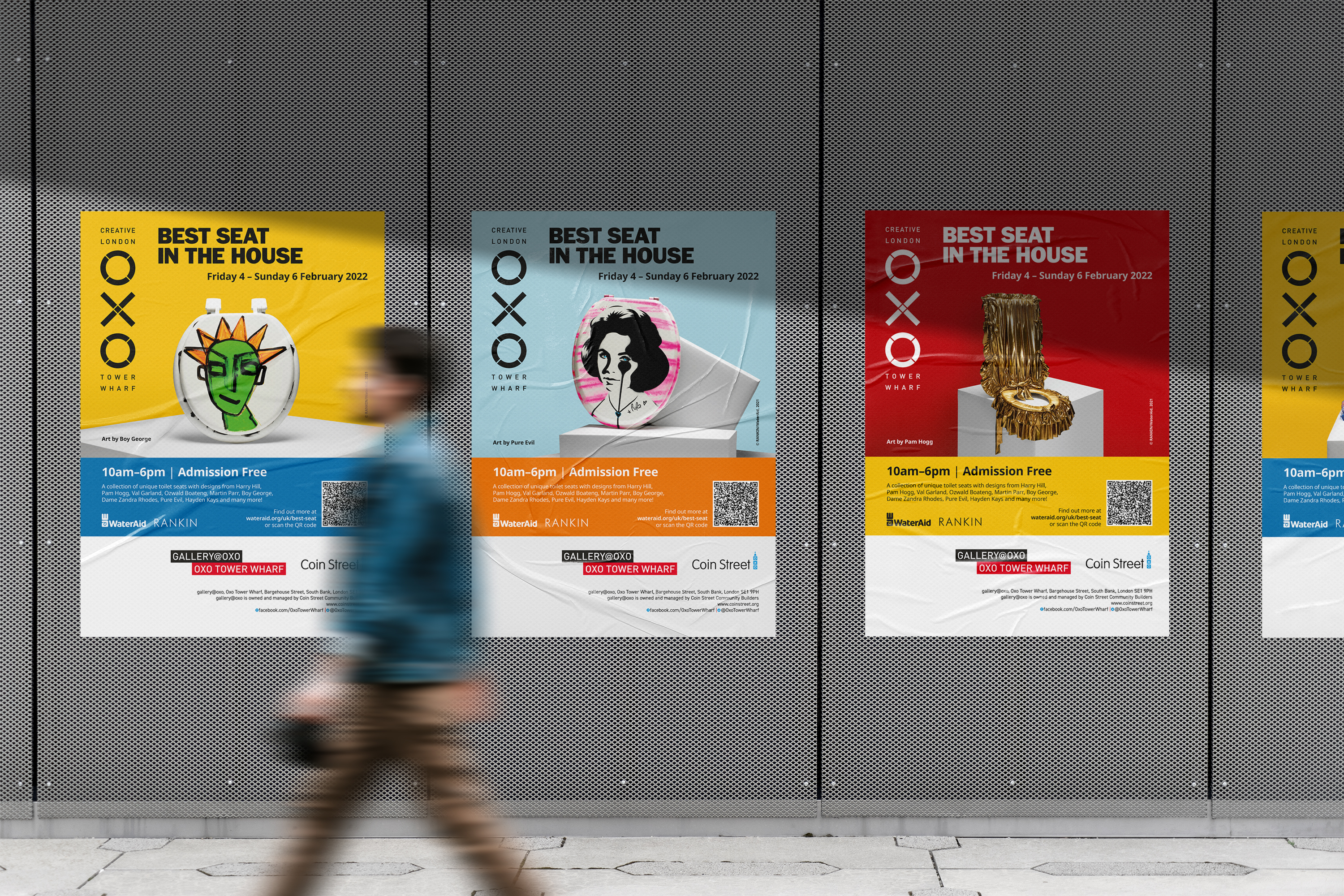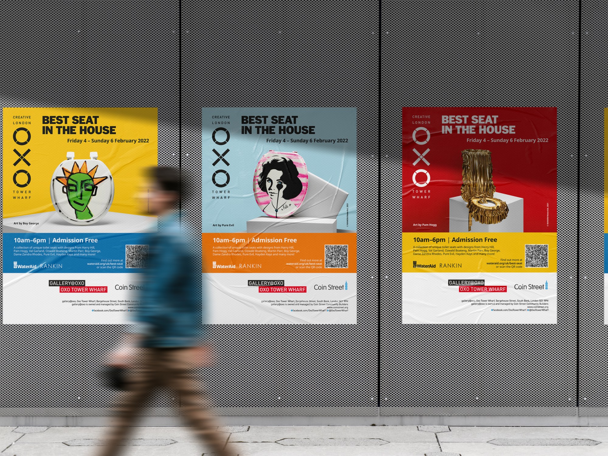 A poster series promoting an exhibition of the toilet seat designs at gallery@oxo.